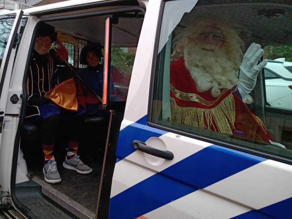 Daar kwam hij aangescheurd met de politie. Zij brachten Sint en de Pieten naar de Elckerlyc.