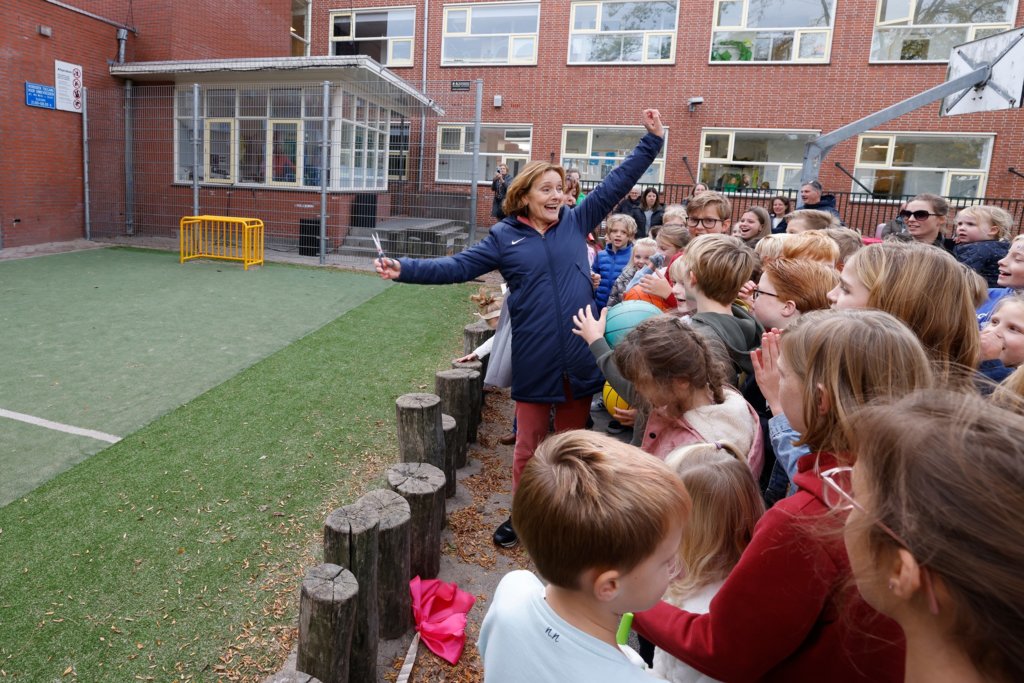 Kijk eens wat een blije gezichten. De kinderen zijn superblij met hun nieuwe voetbalveldje op het schoolplein. Lekker ballen in de pauze. Dit mooie veldje is mogelijk gemaakt door het wijkbudget. Het wijkbudget kan iedereen aanvragen voor een activiteit die ervoor zorgt dat bewoners op een fijne manier met elkaar in de wijk wonen. Voor de spelregels kijk je op hilversum.nl/wijkbudget